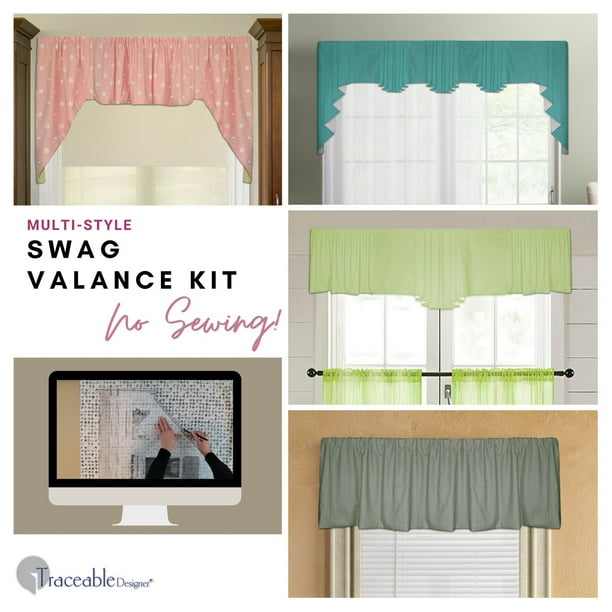 Traceable Designer Pleated Gathered Swag Valance Reusable Kit No Sewing Walmart Com